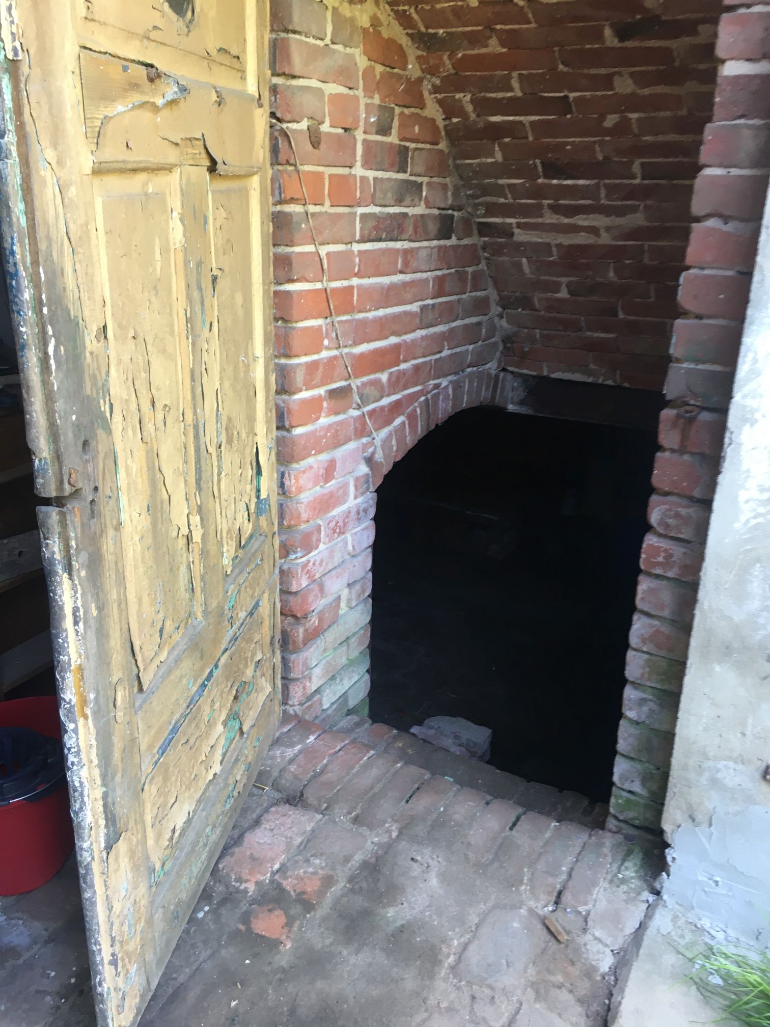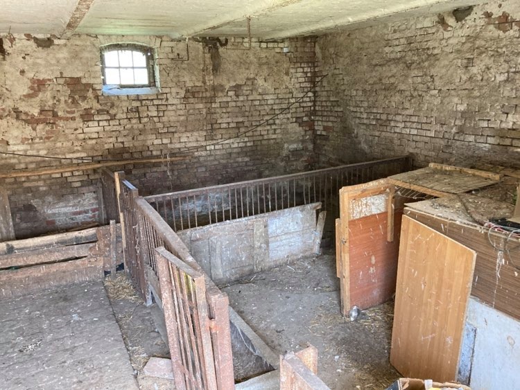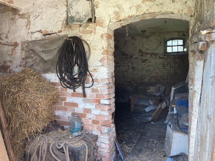Obok domu – stodoła z garażem i piękną, chłodną piwniczką, z uroczymi łukowymi sklepieniami. Wszystko z cegły.