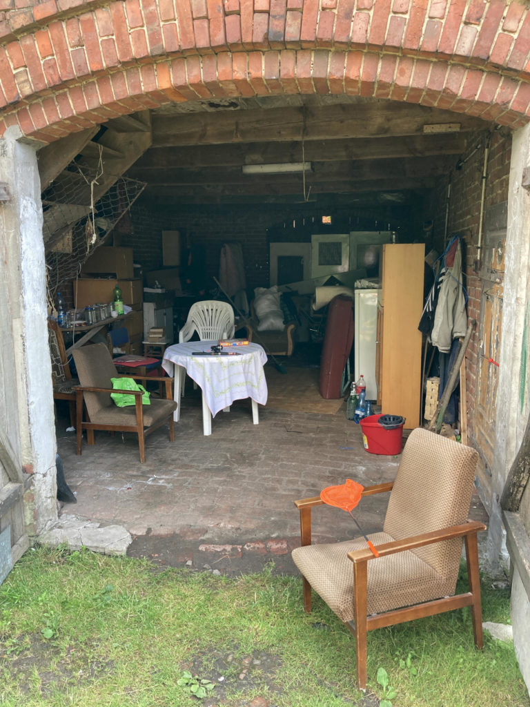 Przez lata zwożono tam różne przydasie po kolejnych remontach. Stoły, szafki, drzwi, wykładziny, dywany, worki pełne ubrań, a nawet lodówka – przecież na wsi wszystko się przyda. W efekcie garaż, w którym zmieściłyby się ze 4 maluchy, zamienił się w magazyn. Albo raczej rupieciarnię.